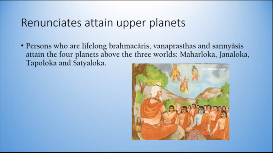 And if one is brahmachari, vanaprastha and sannyasi, then because they are all detached, they don’t have any desires for Svargaloka etc, they can go to Maharloka, Janaloka, Tapaloka, Satyaloka.