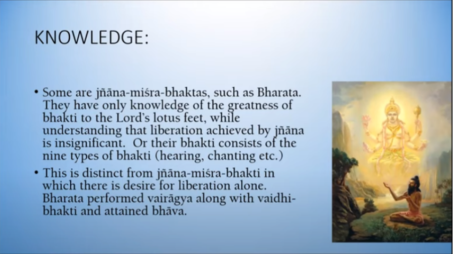 So, he gives an example like Bharat, on austerities, etc. So, they don’t desire just mukti and merging in Brahman, they want the Lord, but there’s a little bit of jnana mixed in their bhakti.