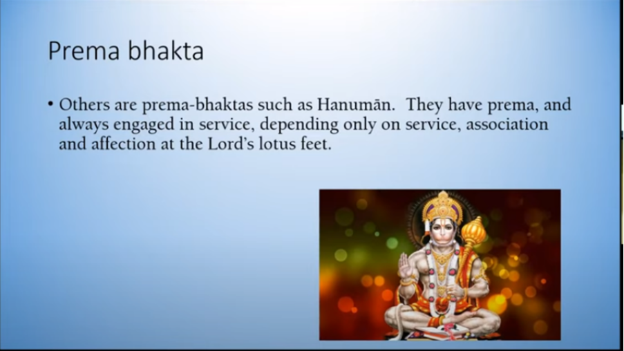 Then we have prema bhaktas like Hanuman, who have attained a very high state of prema. And they’re always engaged in service to the Lord.