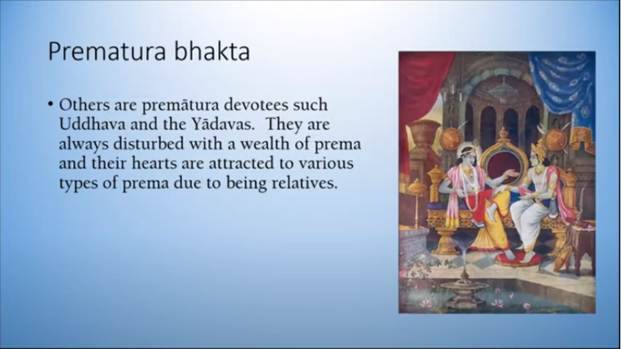 And above this, we’ve got the prema-atura bhaktas, who are very intimate with the Lord, and are constantly with the Lord, like Uddhava and the Yadavas.