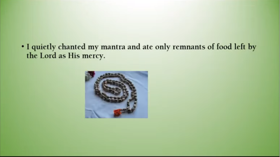 But, even though he was the king, he continued to chant his mantra very quietly and he would take only the prasadam of the deity.