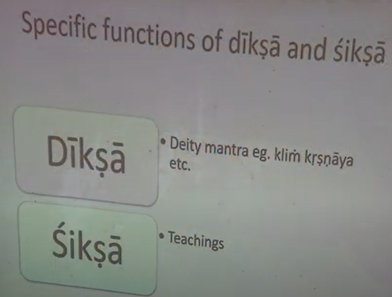 Yes. I think mainly it’s scriptural. Like we have someone like Ramanujacharya had, I think, 15 Shiksha Gurus [Laughs]. So it’s because they taught different areas of knowledge, scriptural knowledge on different things, like one would teach the Tamil Veda, one would teach logic, one would teach something like that. So when we say Shiksha mainly, and what Jiva Goswami uses the term in Bhakti Sandarbha, he’s giving Shiksha on method of worship [Laughs], not something on how to deal with your family.