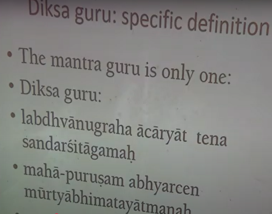 Okay, anyway. Just a little more on that. So, one takes only one diksha Guru. So, the idea, of course, is that you’re getting a mantra from that Guru and that makes him the diksha Guru. I’m just emphasizing that. So, it’s not that simply because somebody teaches you, he becomes your diksha Guru. No, he’s your siksha Guru. If you get that mantra from him ‘Klim Krishnaya..’ etc., then that’s diksha. So, that’s when we talk in scripture, when we speak of diksha Guru, that’s what it means. Now, in ISKCON, of course, we use it in a more general term. So, I’m not talking about that. I’m talking about what Bhagavatam or other works are talking.