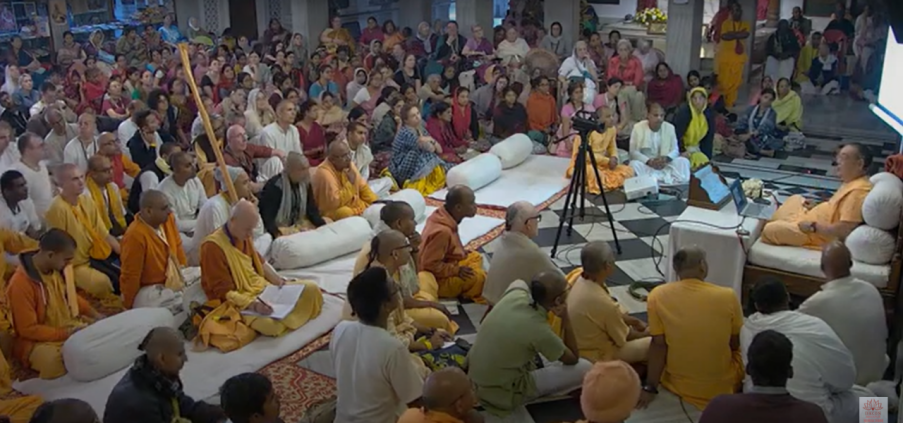 Some of this, of course, is kind of a result of how the devotees were so enthusiastic about Prabhupada when he was present, and so we would worship him with everything we had, because he was on a very high level and we have Vyasa Puja books and Guru Puja ceremonies, Vyasa Puja ceremonies, etc., etc., so many things. So it’s natural that we just want to copy everything for all the Gurus, but this is not a logical conclusion [Laughs]. Then we simply copy everything. Some things maybe we can copy, some things we should not copy. So therefore this idea about the worship, we have to moderate it. That’s the whole idea. And not only moderate, we have to moderate our concept of who our Guru is. So we can’t have artificial expectations. So, the Guru is worshipped because he delivers spiritual knowledge in the form of scripture as a Diksha Guru, and he gives the Diksha mantra as a Diksha Guru.