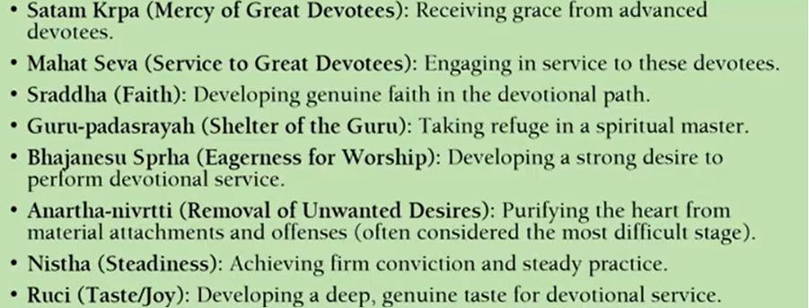 After anartha nivrtti, we have nishta, ruchi, asakti. So gradually the anarthas and the aparadhs are dissipated. So in other words, if one has aparadhs and one begins the practice of pure bhakti, the process becomes gradual. So these stages of bhajana kriya, anartha nivrtti, nishta, ruchi, asakti, etc. So there is a gradual progress. And this is described as stages for people who have aparadhs.