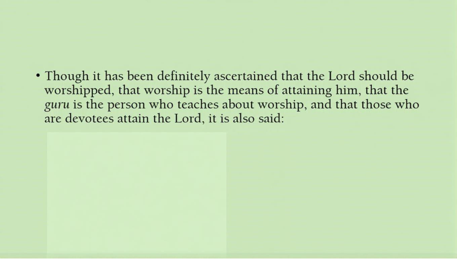 So, though it has been definitely ascertained that the Lord should be worshipped. In other words, we don’t want to offend the Lord by thinking he is a Devata. That worship is the means of attaining him and the Guru is the person who teaches about worship and that those who are devotees attain the Lord.